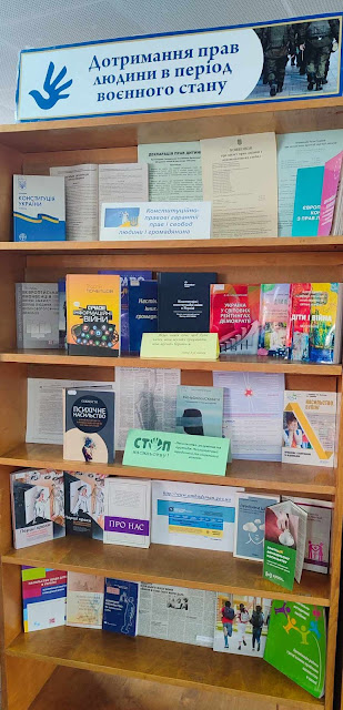 У відділі читальних залів ВОУНБ імені Олени Пчілки відкрилася книжкова виставка: «Дотримання прав людини в період воєнного стану». Цій тематиці присв’ячений розділ «Насильство: розуміння та протидія. Психологічний, юридичний та соціальний аспект».